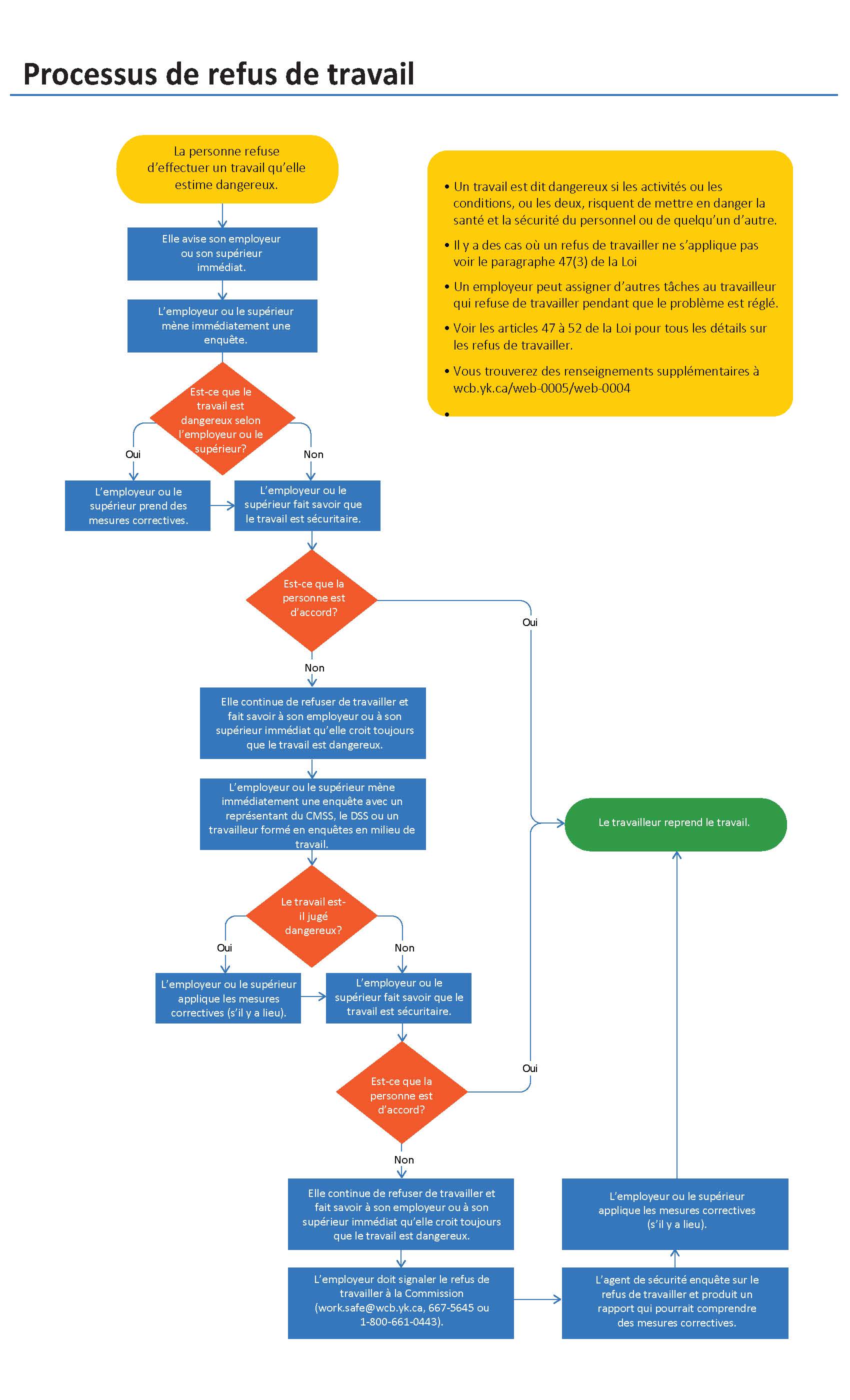 En tant que travailleuse ou travailleur, vous avez le droit de refuser du travail dangereux sans craindre de mesures disciplinaires de la part de votre employeur ou de votre superviseure ou superviseur (voir la page sur les représailles [en anglais]).